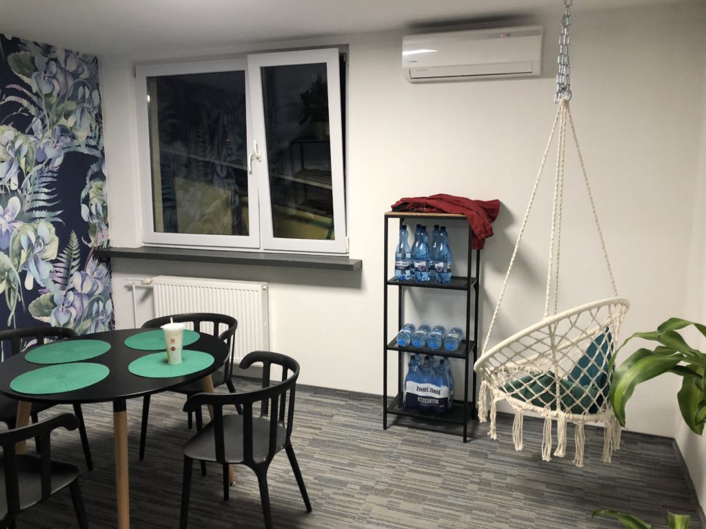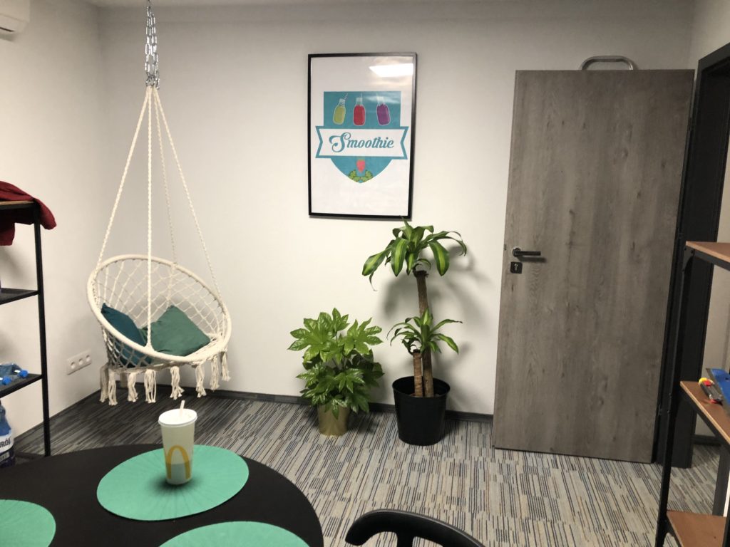 U mnie w biurze jest miejsce przeznaczone do gry w tenisa stołowego (ze względu na siedzący tryb pracy) oraz huśtawka, która pozwala się zrelaksować.