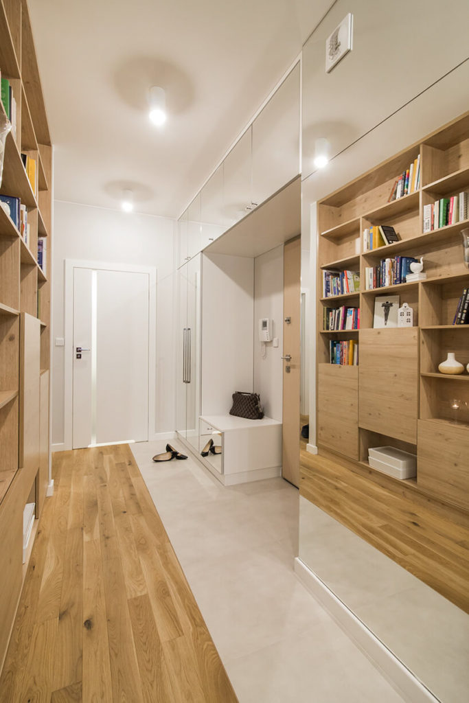 Dobrym pomysłem może okazać się zrobienie biblioteki już na wejściu do domu. Jest to z pewnością oryginalne i zarazem praktyczne rozwiązanie. Półki można przymocować na całej szerokości ścian i przy tym zagospodarować wnęki.