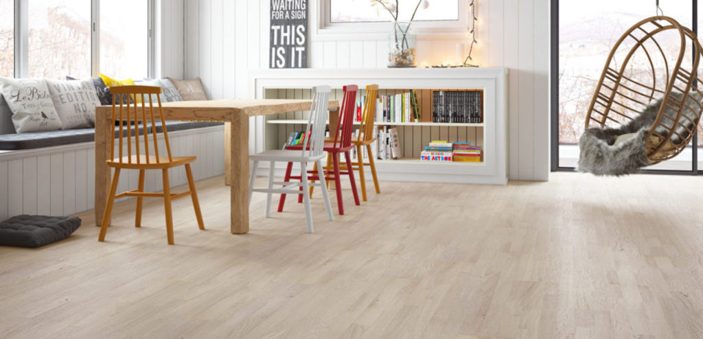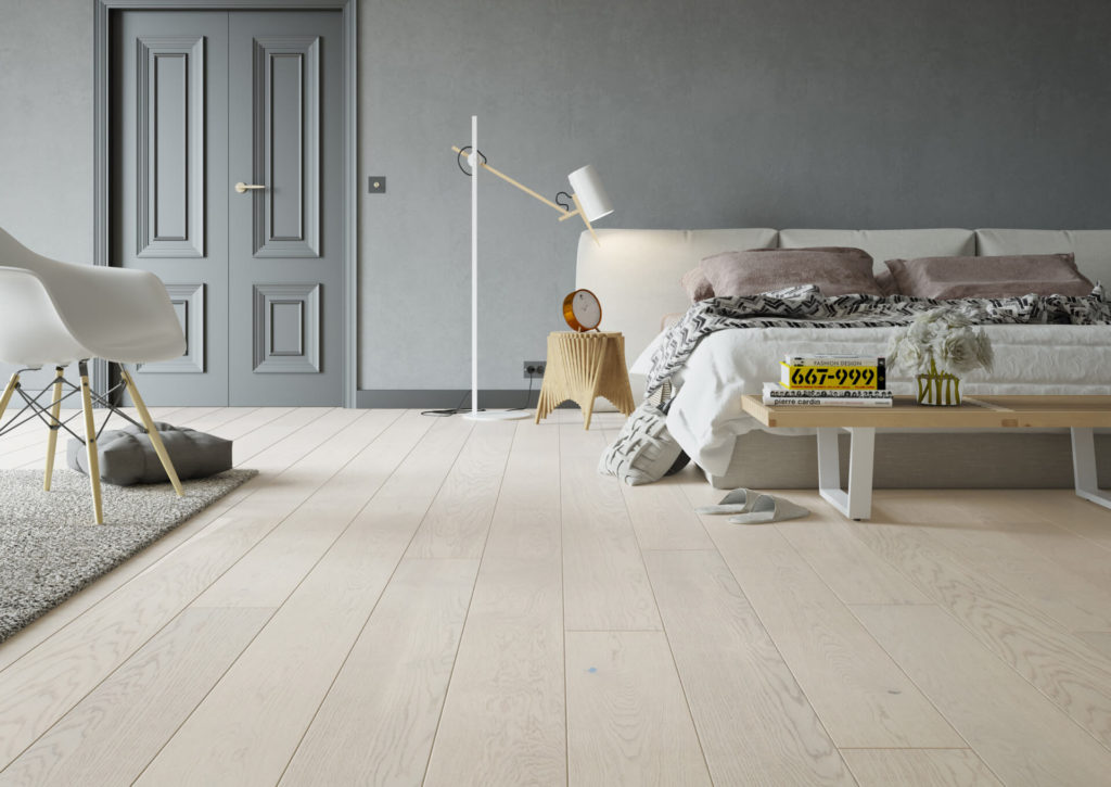 Wybór koloru podłogi jest bardzo ważnym elementem podczas aranżacji wnętrz. Decyduje przede wszystkim o charakterze i klimacie danego pomieszczenia. Jasna podłoga jest dobrym wyborem, między innymi dlatego, że jest uniwersalna i dopasowuje się do każdego stylu. Przy tym rozjaśnia ciemne i małe wnętrza, a w dużych podkreśla nowoczesność oraz lekkość. Świetnie wygląda w połączeniu z jasnymi, jak i z ciemnymi meblami. Dodatkowo komponuje się z mocnymi oraz delikatnymi kolorami ścian. Jednak lepiej unikać jasnych, jednolitych ścian w kombinacji z meblami i podłogą w tym samym kolorze. Przez takie połączenie możemy sprawić, że wnętrze będzie wydawało się płaskie i bez wyrazu.