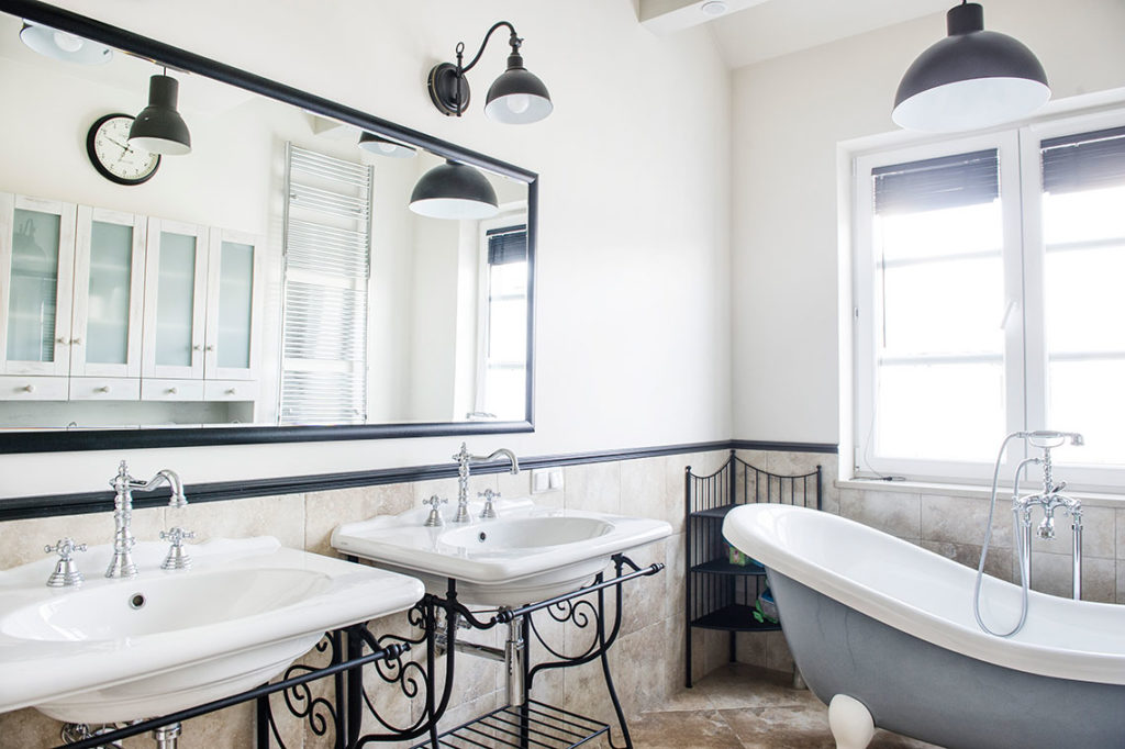 Dzięki dodaniu kilku elementów dekoracyjnych sprawimy, że nasza łazienka stanie się bardziej spójna. Wystarczy dobrze rozmieścić źródła światła, dobrać ozdobne klosze i jakieś inne dodatki, np. mydelniczkę, ręczniki. Do łazienki w tym stylu świetnie nada się owalne lustro z dekoracyjną ramą.