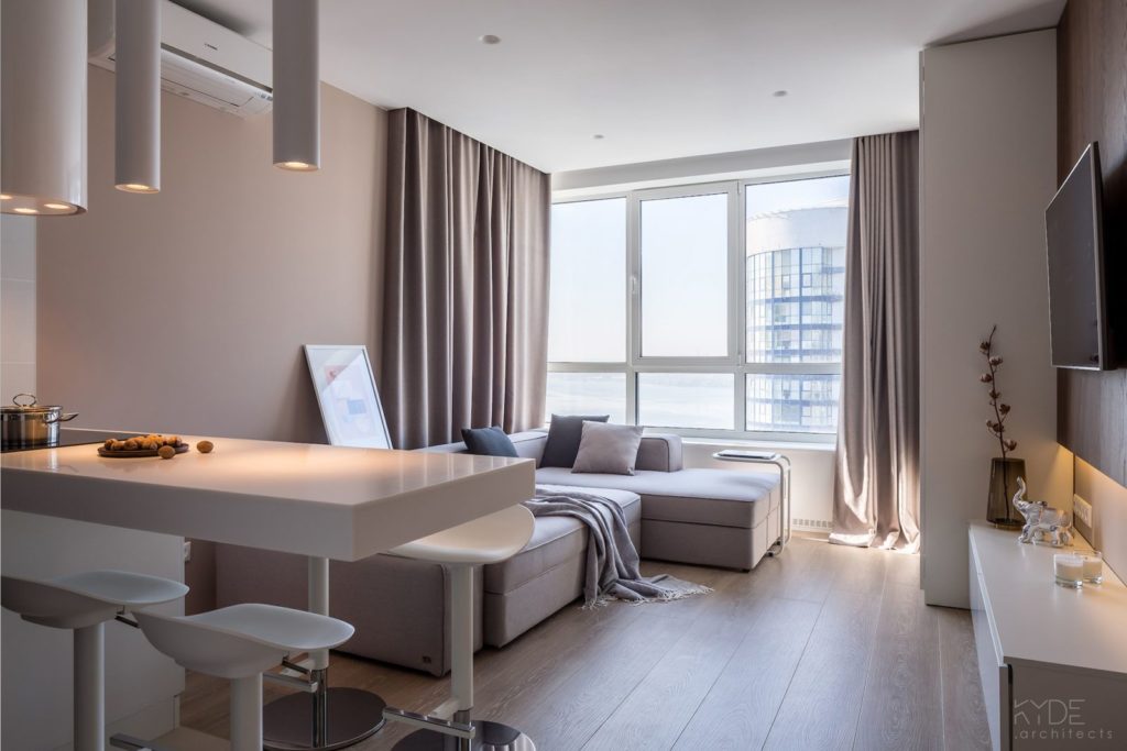 Najprostszą zasadą, aby optycznie powiększyć wnętrze jest postawienie na jasne kolory. Powinniśmy unikać ciemnych barw, ponieważ przez nie nasze małe mieszkanie będzie wydawało się jeszcze mniejsze. Kolory, które idealnie się sprawdzą do naszej kawalerki to: jasne beże, szarości, biel oraz pastelowe odcienie. Ważne jest, żeby w naszym mieszkaniu było dużo naturalnego światła, dlatego warto nie zakładać wielkich, grubych zasłon i postawić na delikatne firanki albo totalnie zrezygnować z nich. Jeśli chodzi o fakturę to tutaj sprawdzi się satyna oraz szkło. Lustra optycznie powiększą nasze wnętrza, jak również materiały ze śliskim, odbijającym światło wykończeniu.