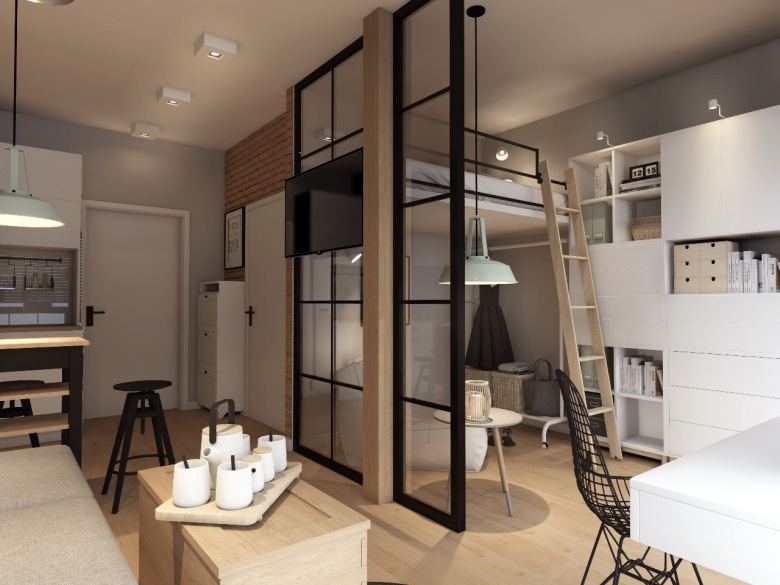1. Podział kawalerki na strefy