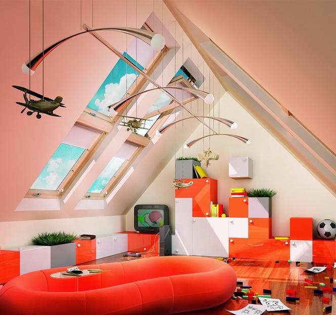Pokój do zabaw to świetny pomysł na poddasze. Skosy mogą okazać się dodatkowym atutem dla dzieciaków, ponieważ są w stanie posłużyć im jako kryjówka lub baza do zabawy . Kolejnym plusem jest to, że bawiące się dzieci na poddaszu nie będą za dobrze słyszalne dla reszty rodziny z np. salonu. Dzięki czemu dorośli, podczas zabawy dzieci mogą się spokojnie zrelaksować. Pokój do zabaw nie musi być rozumiany tylko, jako pomieszczenie dla małych dzieci. Można również poeksperymentować i zrobić wnętrze przeznaczone do gier dla starszych.