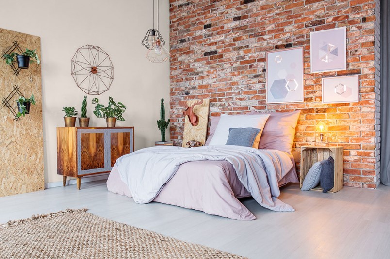 5. Cegła na ścianie za łóżkiem